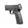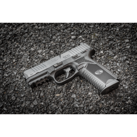 Pistolet FN 509 MS to broń z 4 calową lufą i magazynkiem mieszczącym do 17 sztuk amunicji w kalibrze 9x19mm. Dodatkowo posiada on manipulatory obustronne, 3 bezpieczniki, chwyt bardziej prosty, który znacząco poprawia komfort użytkowania. Wydłużona konstrukcja zrzutu magazynka pozwala na zrzut bez konieczności zmiany chwytu pistoletu.