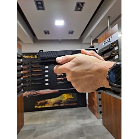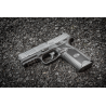Pistolet jest zapakowany w walizce, w której skład wchodzą takie rzeczy jak dodatkowy magazynek, instrukcja obsługi, zestaw do czyszczenia broni oraz 3 wymienne okładziny.