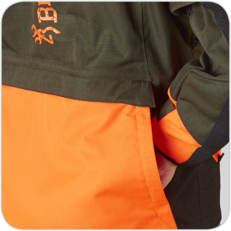 Kurtka Browning Tracker Pro w kolorze pomarańczowo-zielonym to model z najwyższej półki, zaprojektowany specjalnie dla myśliwych zbiorowych oraz tych, którzy nie uznają kompromisów w terenie. Łączy w sobie maksymalną widoczność, dzięki intensywnym pomarańczowym panelom, z naturalną zielenią, która zachowuje klasyczny, outdoorowy wygląd. Wzmocnione panele, wodoszczelność, odporność na przetarcia oraz pełna swoboda ruchów sprawiają, że ten model sprawdza się tam gdzie inne kurtki zawodzą.