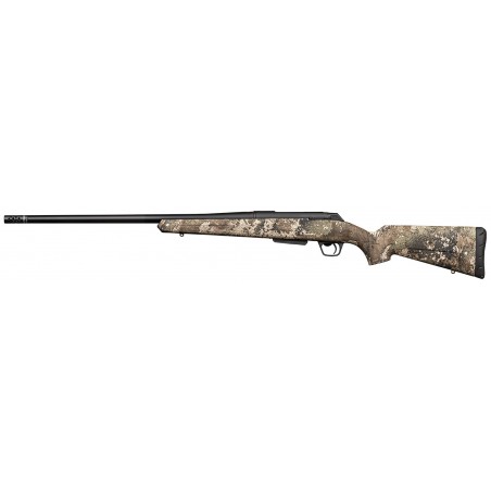 Sztucer Winchester XPR Strata Threaded posiada niesamowite malowanie pozwalające się zakamuflować. Sztucer został wyposażony w kompensator.